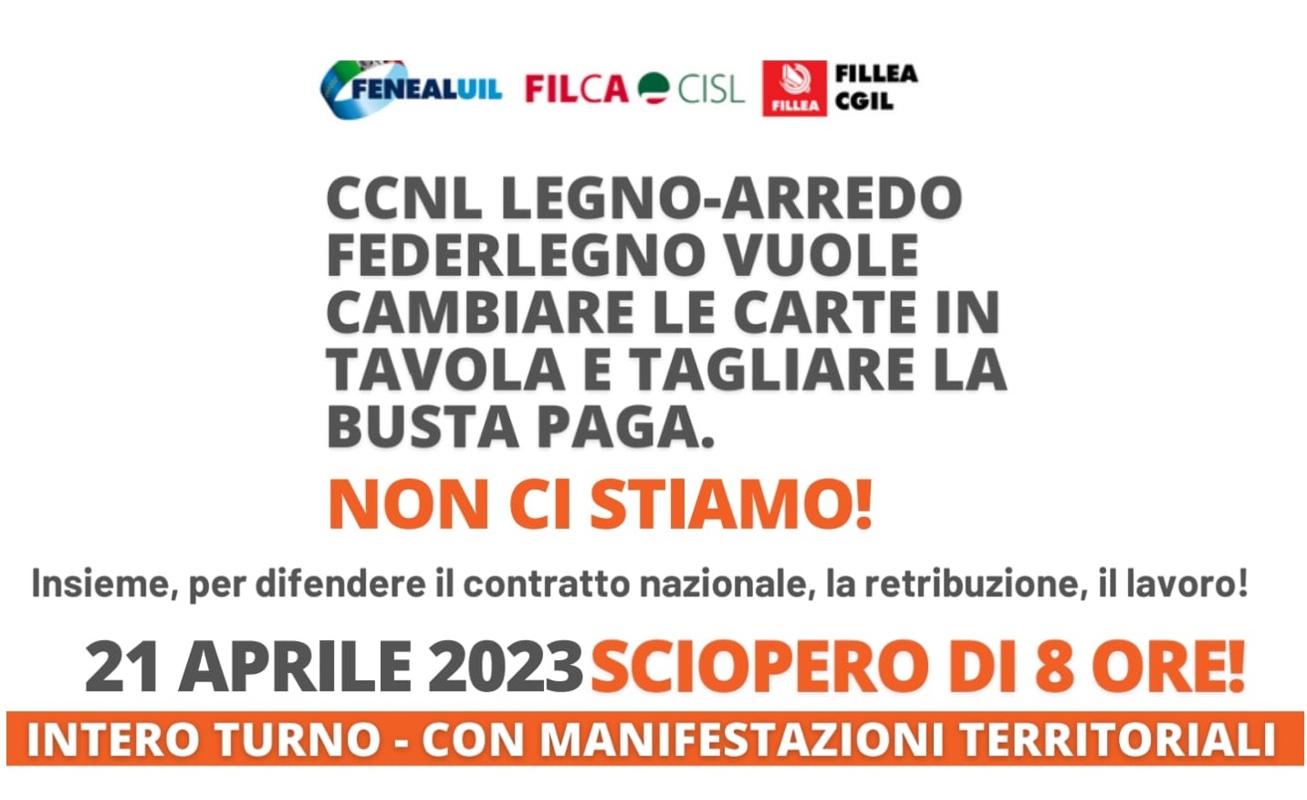 Venerdì 21 aprile, nella settimana del Salone del Mobile, sciopero per l’intero turno di 8 ore con manifestazioni territoriali.